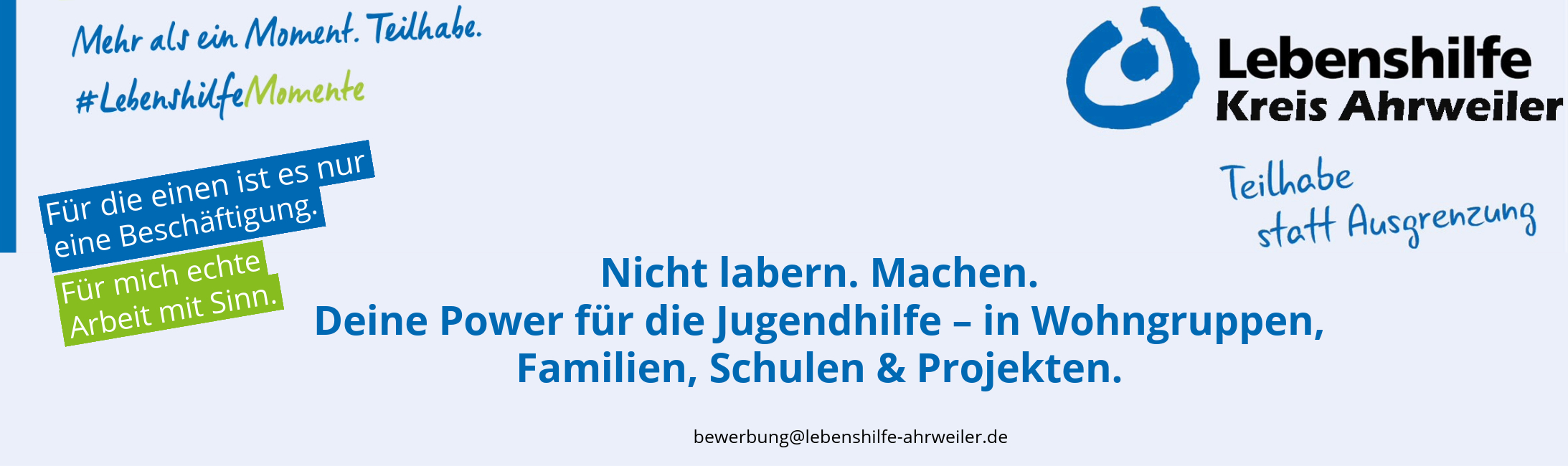 Schicken Sie dafür Ihre Bewerbungsunterlagen als PDF-Datei per E-Mail an: bewerbung@lebenshilfe-ahrweiler.de
